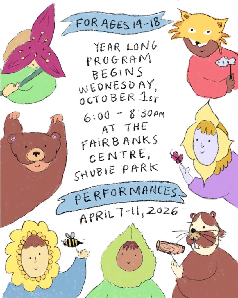 Gale Force Theatre Young Company is a FREE year long program for teenagers ages 14-18. This is a training program for youth that are interested in collective creation and performance. The program will culminate in a mini tour to elementary schools in April 2026.